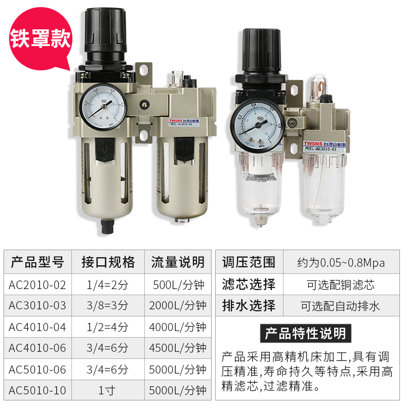 Air compressor oil water separator filter air pump pressure regulating valve air source processor two-piece pneumatic pressure reducing valve