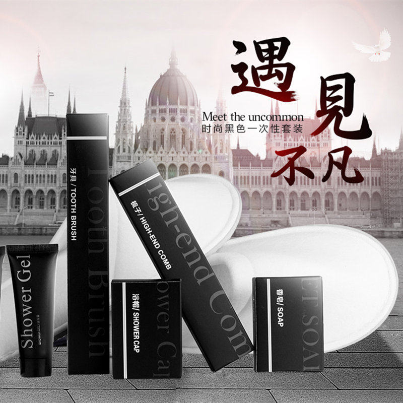 Six-piece set Seven-piece set (2 sets of teeth)Nine-piece set of teeth (10 sets)Comb (100 sets) Soap (100 sets)Shower cap (100 sets) Shampoo (100 sets)