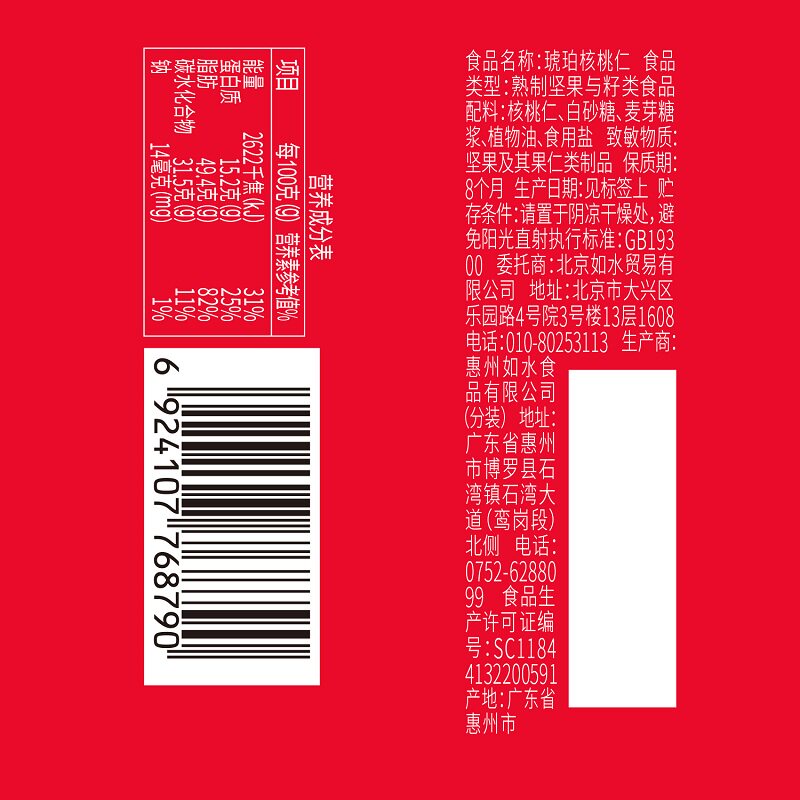 Such as water amber walnut walnut kernel 530g barrels Yunnan paper skin thin skin walnut nut dried fruit office casual snacks