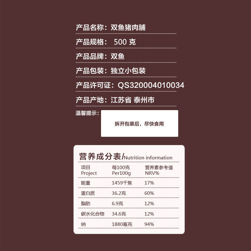 Pisces brand preserved pork with independent small packaging 500g original authentic Pisces brand pork preserved gift box quality