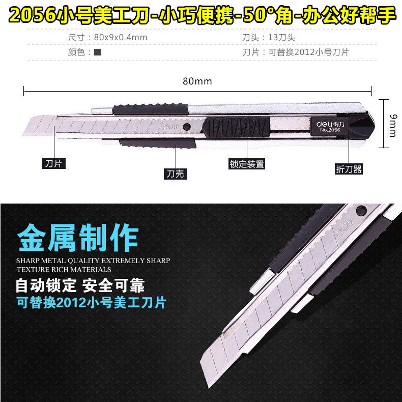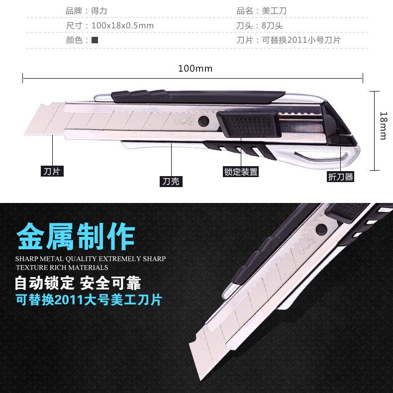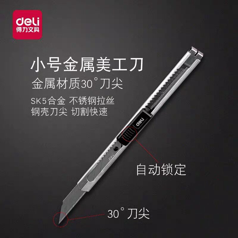Deli metal size 30 degree bevel utility knife carving mobile phone protective film tool sharp knife wallpaper knife holder blade