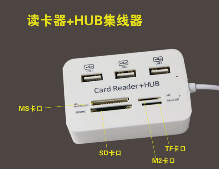 Square USB COMBO 3 mouth USBHUB all-in-one card reader bicolor optional