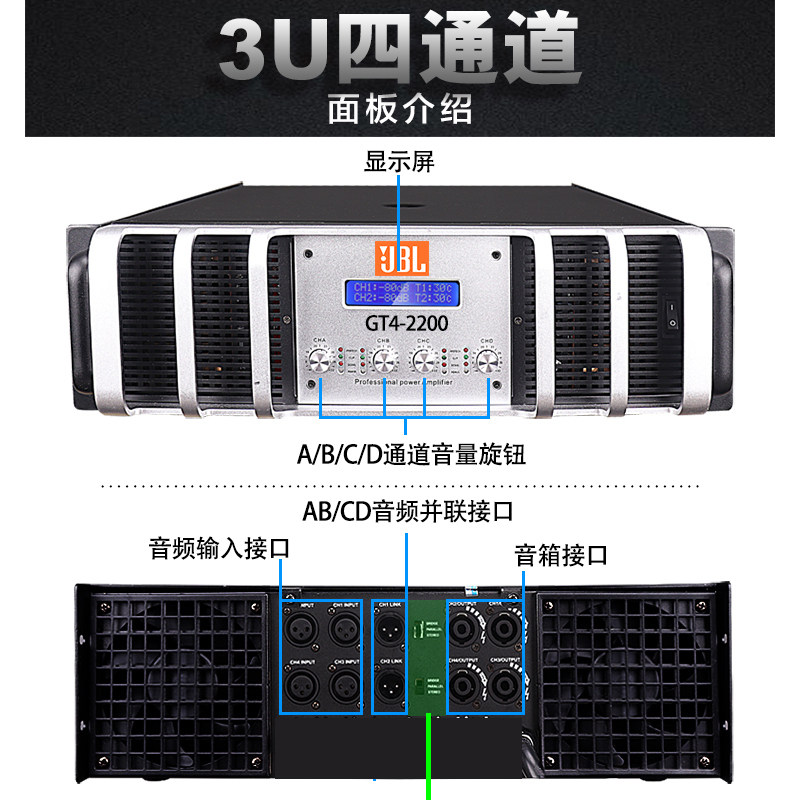 JBL Household Hifi Stage KTV Conference Four Channel Heavy Bass High Power Pure Rear-level Professional Audio Amplifier