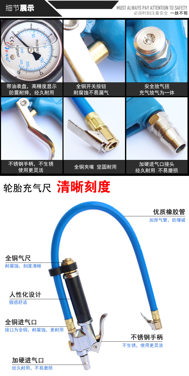 Taiwan Unai inflatable table Car tire grip with ruler inflatable gun barometer nozzle filling table