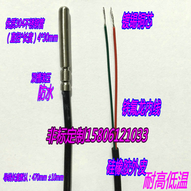 Thermistance temperature sensor monitor 4 * 30MM accuracy 1% waterproof 3950 NTC 10K 100K
