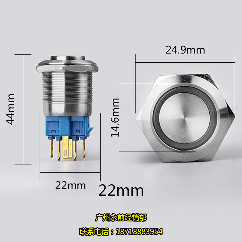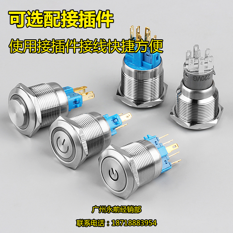 22MM reset self-locking metal push button switch stainless steel with light switch waterproof explosion-proof car modification
