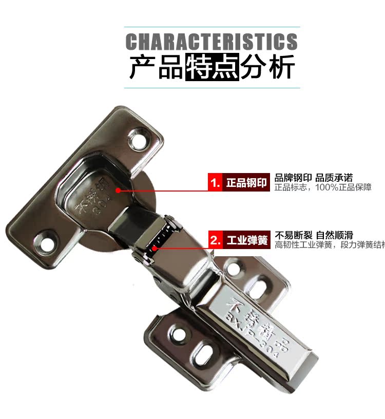 Stainless steel hydraulic hinge buffer spring hinge thickened stainless steel damping integral cabinet wardrobe shoe cabinet door