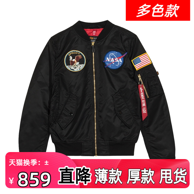 Blue NASA Space Agency-Cotton coat European size is too large(chest armband) NASA Apollo(armband on the back) Black cotton coat European size spring and autumn single coat(NASA Space Agency-