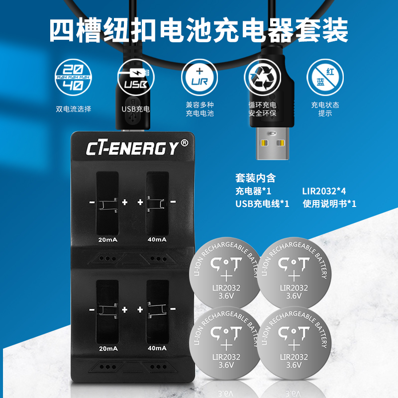 Chite LIR2032 3 6V charging button lithium-ion battery car remote control electronic scale computer motherboard CR2032 charger cycle reuse Xiaomi box Bluetooth scale