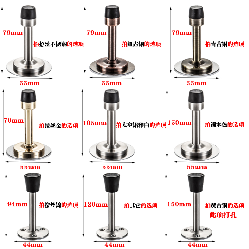 Non-perforated door touch stainless steel extended door block Anti-collision powder room door top rubber door block Glass door door suction door block