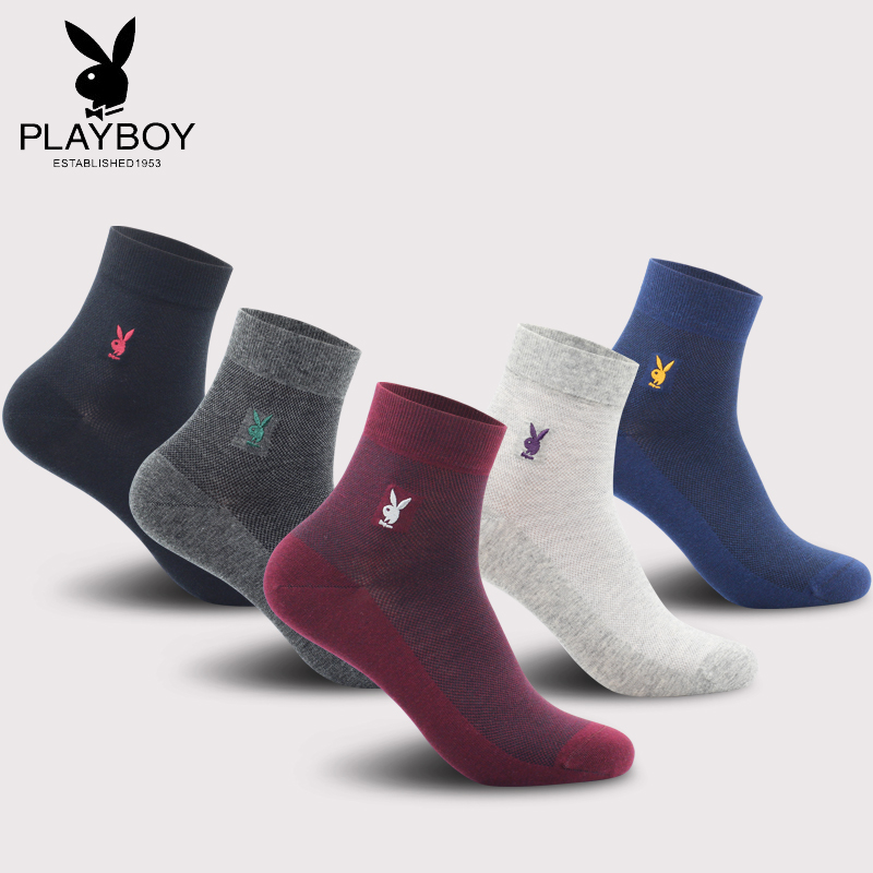 Playboy socks men's socks pure cotton cotton deodorant sweat-absorbing breathable mesh tube socks summer thin stockings men