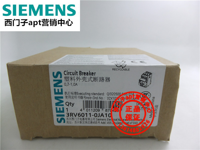 (Fake one penalty ten) Original Siemens motor protection circuit breaker 3RV6011-0JA10 0 7-1 0A