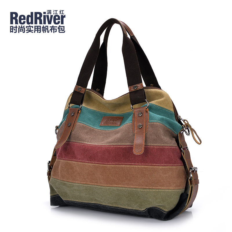 Man Jiang Hong Canvas Handheld Women's Bag Korean Tide Bag Leisure Inclined Backpack Large Ladies Shoulder Bag Large Capacity Backpack
