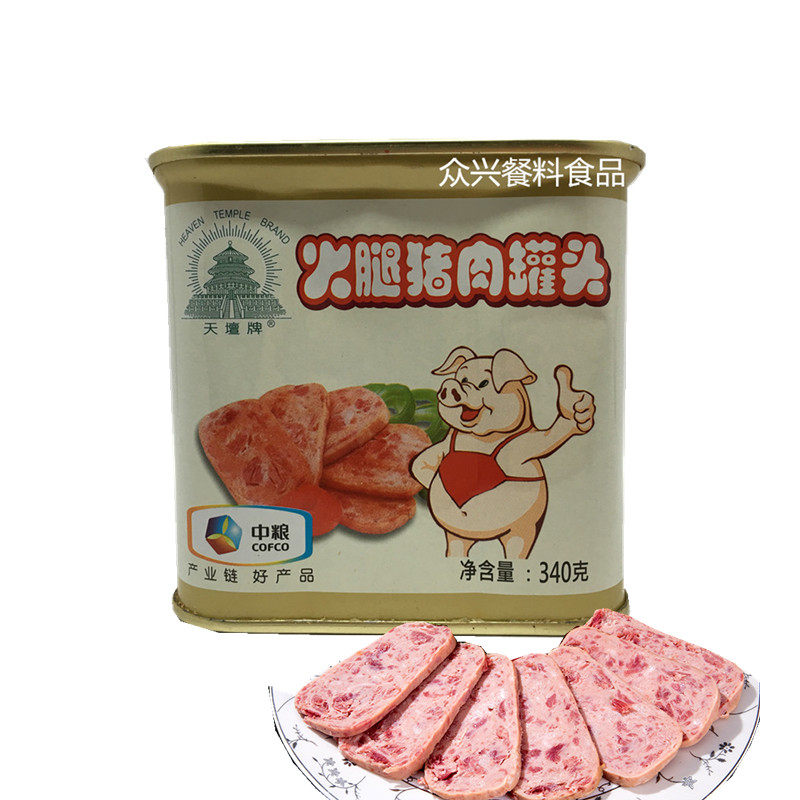 Little white pig lunch meat Tiantan brand ham meat pork 340g cans ready-to-eat household take-out hot pot instant food