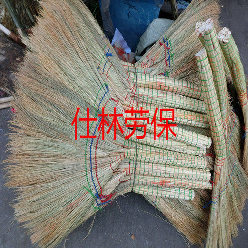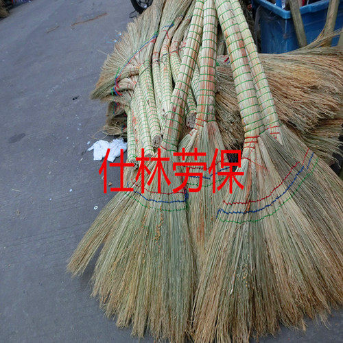 Old-fashioned rural factory courtyard sanitation sorghum seedlings pole golden wire seedlings size broom broom sweeping long handle thick