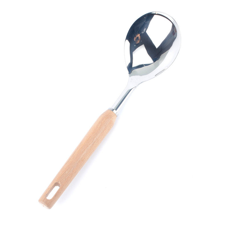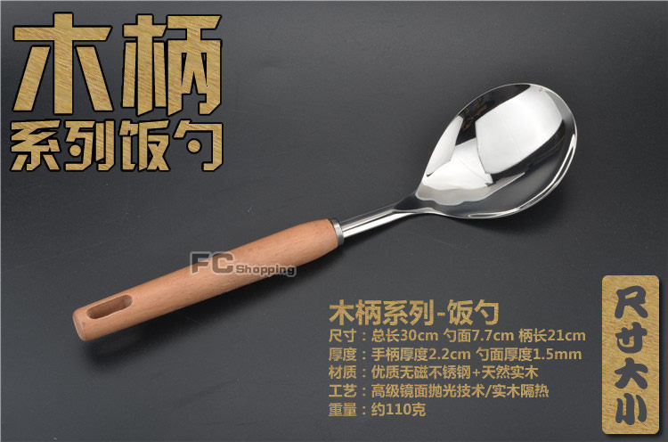 Stainless steel tableware Rice spoon spoon Soup spoon Korean non-stick long handle Fluffy wood handle series