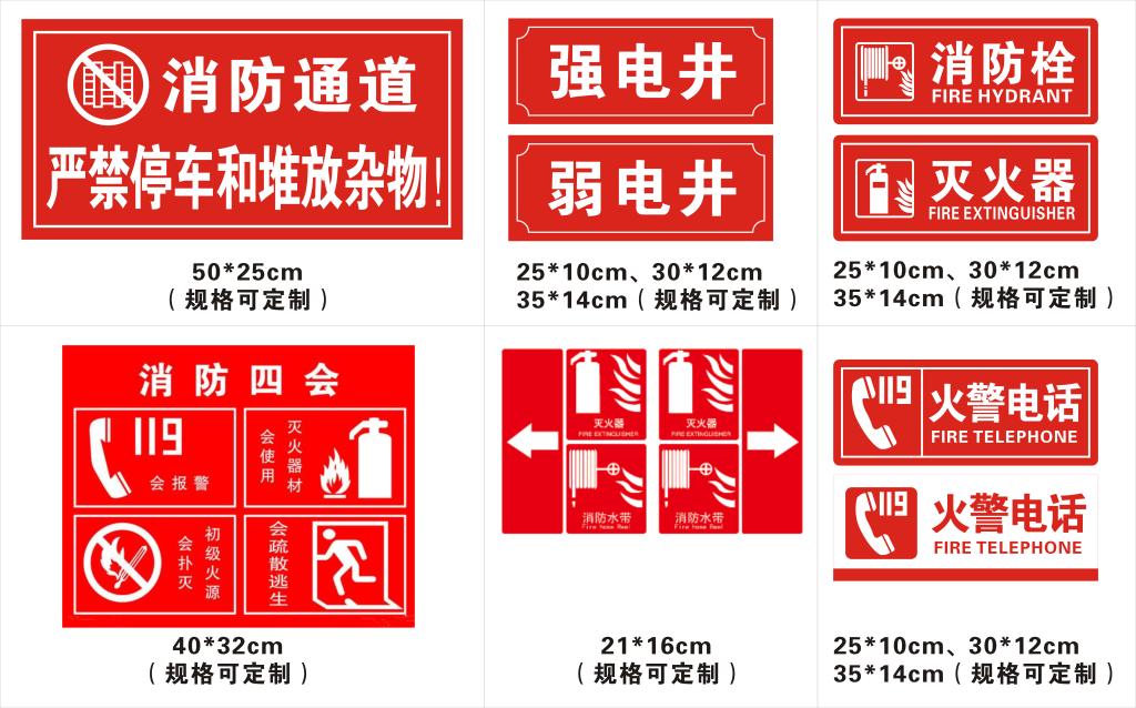 Custom Bicolor Plate Engraving Fire Hydrant Wall Patch Fire Bolt Alarm Bell Logo Reminder Sign Plate Fire Extinguisher