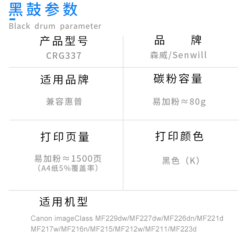 CRG337 Toner Cartridge (Easy to add powder, print about 1500 pages) CRG337 Toner Cartridge (High-end version without waste toner design, no need to remove waste toner)