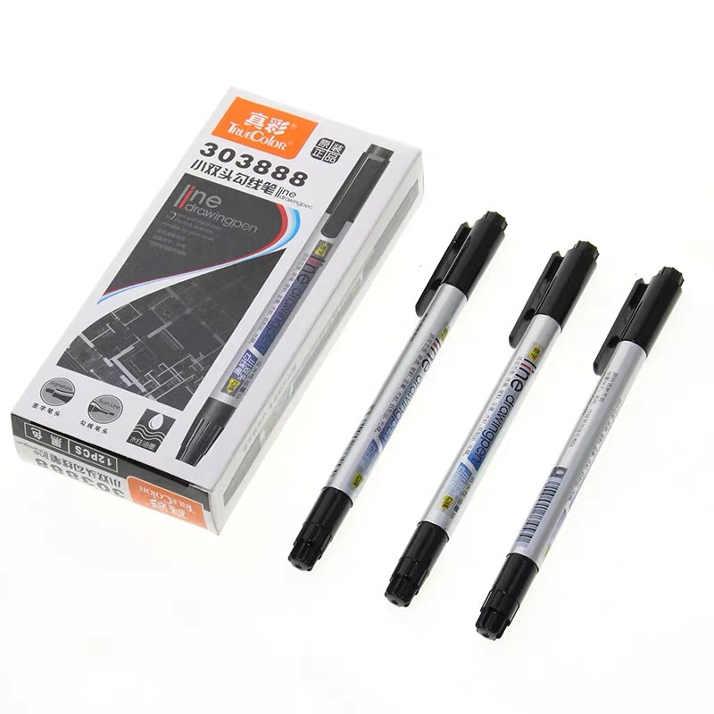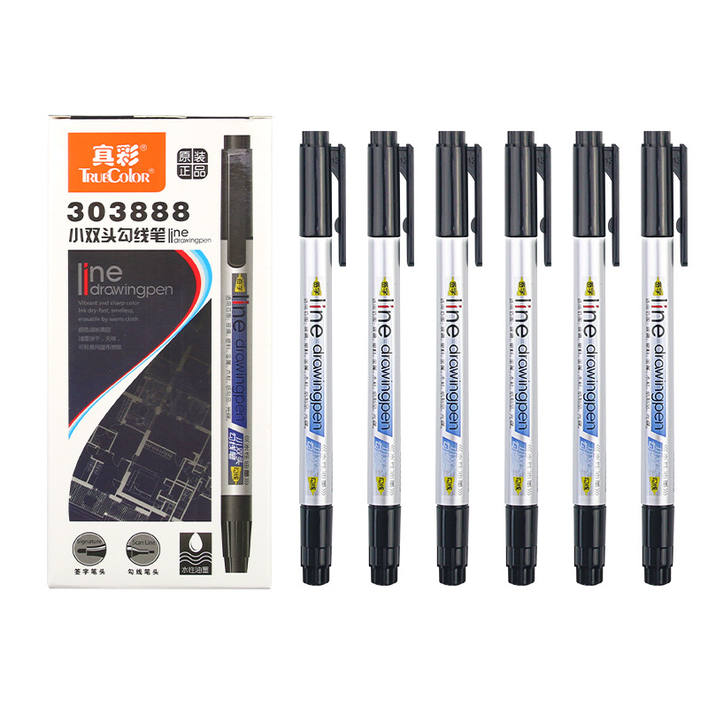 True colour small double head hook line pen 12 whole box double head water-based ink pen number pen 303888