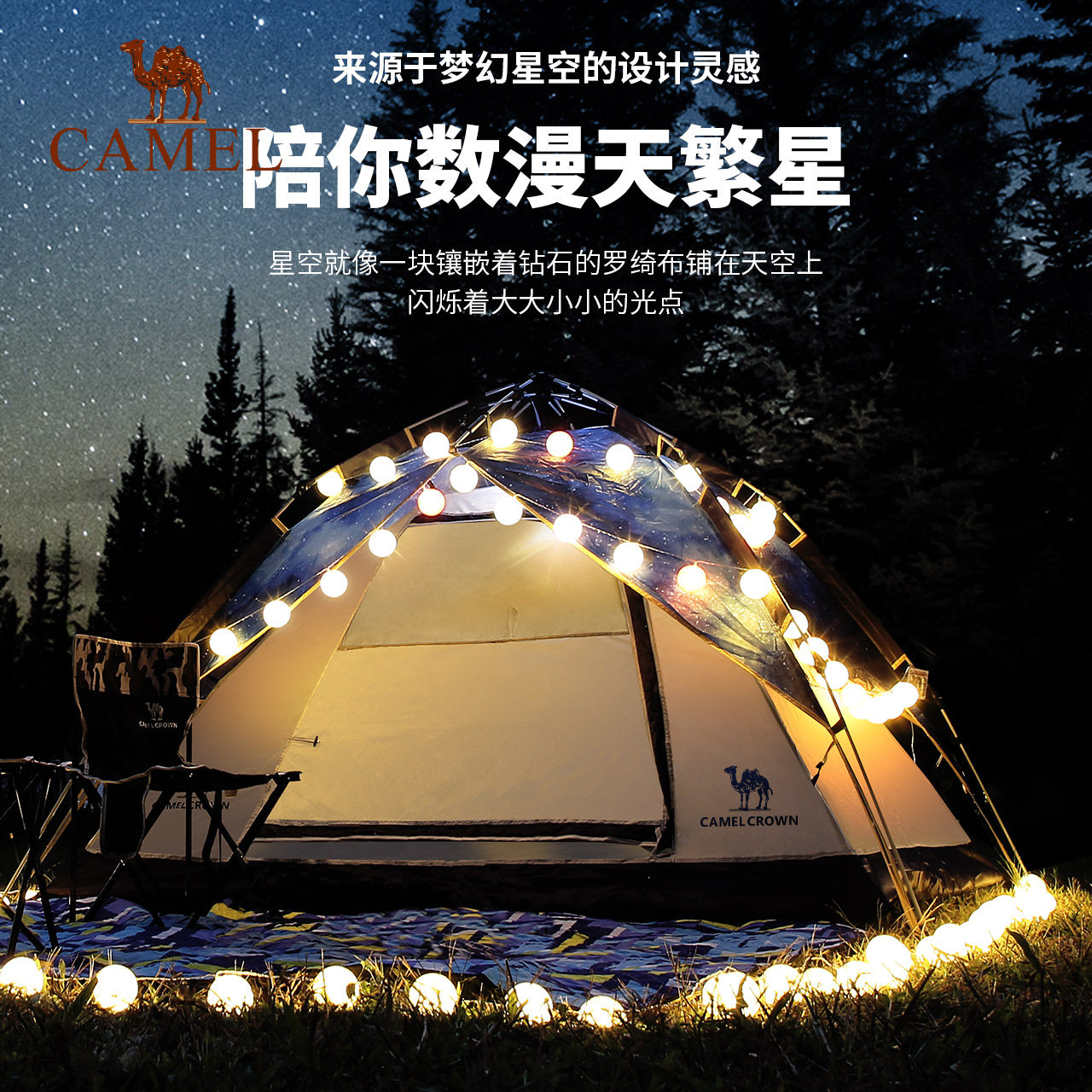 Camel starry sky hydraulic tent outdoor portable automatic pop open net red picnic camping thickened rainproof camping