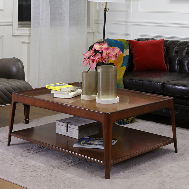 High-end series) Xiaomei Countryside Peach Blossom Heart Wood Sofa Tea Table Square Minimalist Designer Custom Solid Wood Living Room