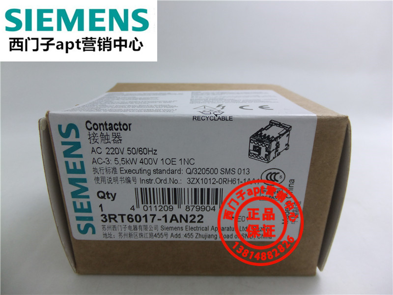 (Fake one penalty ten) Original Siemens AC contactor 3RT6017-1AN22 220V 1NC