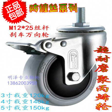 Thick Deccastor M12 Wire Rod Universal Wheels 3 Inch Trundle Brake Wheel 5 Inch Screw Rod Wheel Nylon Cart 4 Inch