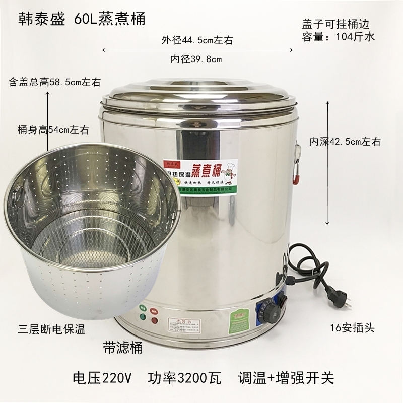 60L stainless steel 304 electric heating double-layer thermal insulation cooking heating boiling water milk tea bucket soup stove bone soup noodle cooking bucket