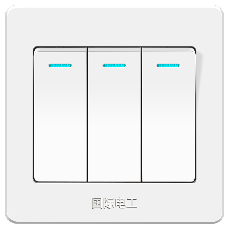 (Three-open single control)86 wall household switch socket panel light button three-position switch triple single control