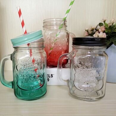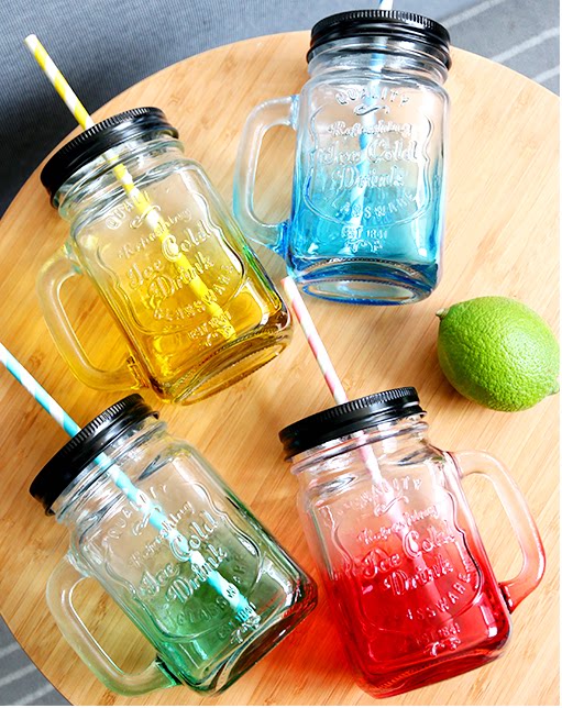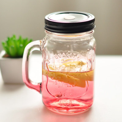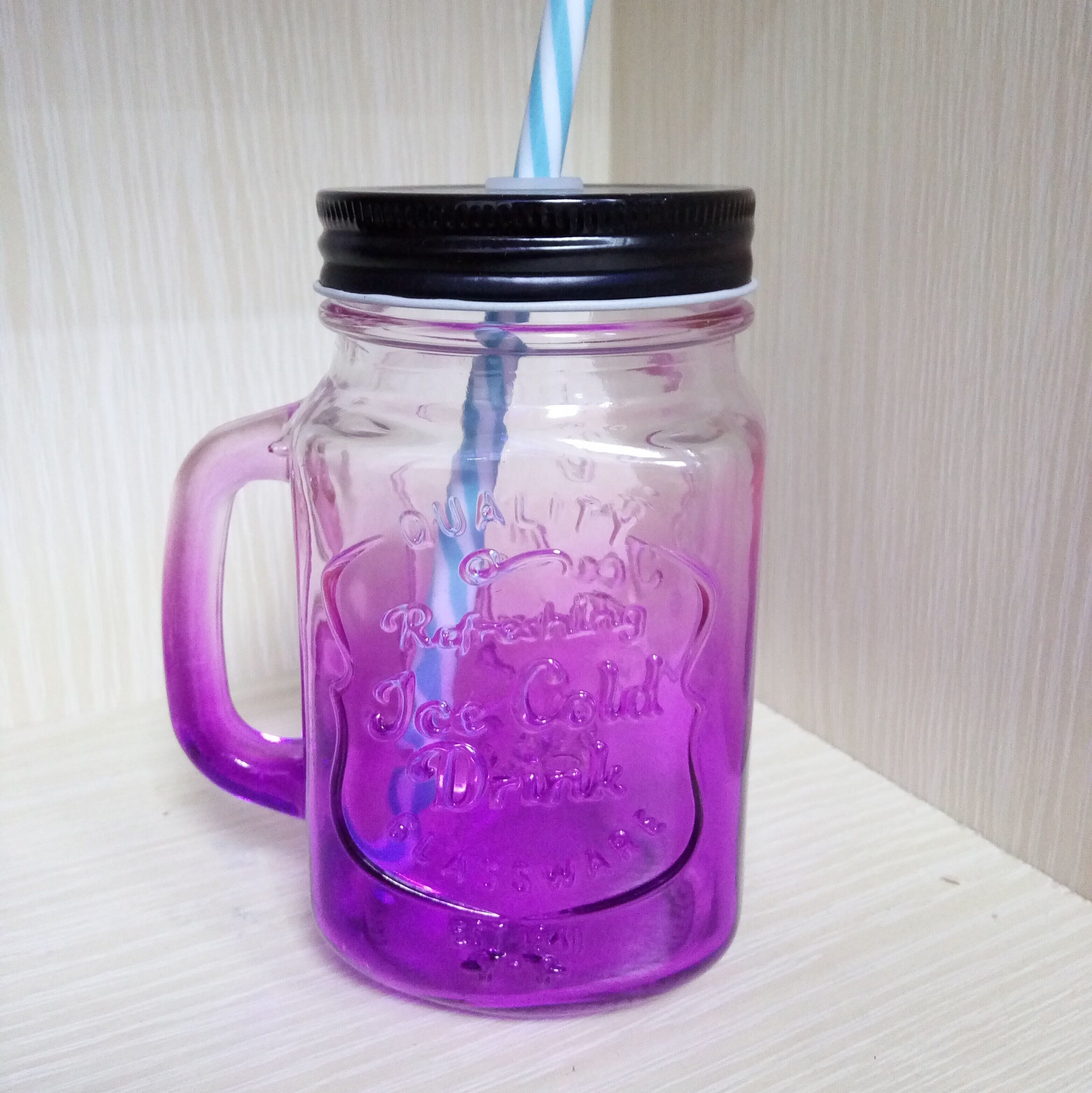 Mason Cup Cold Drink Cup Glass Gradual Color Drink Cup Cup Cup Cup Flavoring Yogurt Cup Can Stick Can Suction Tube