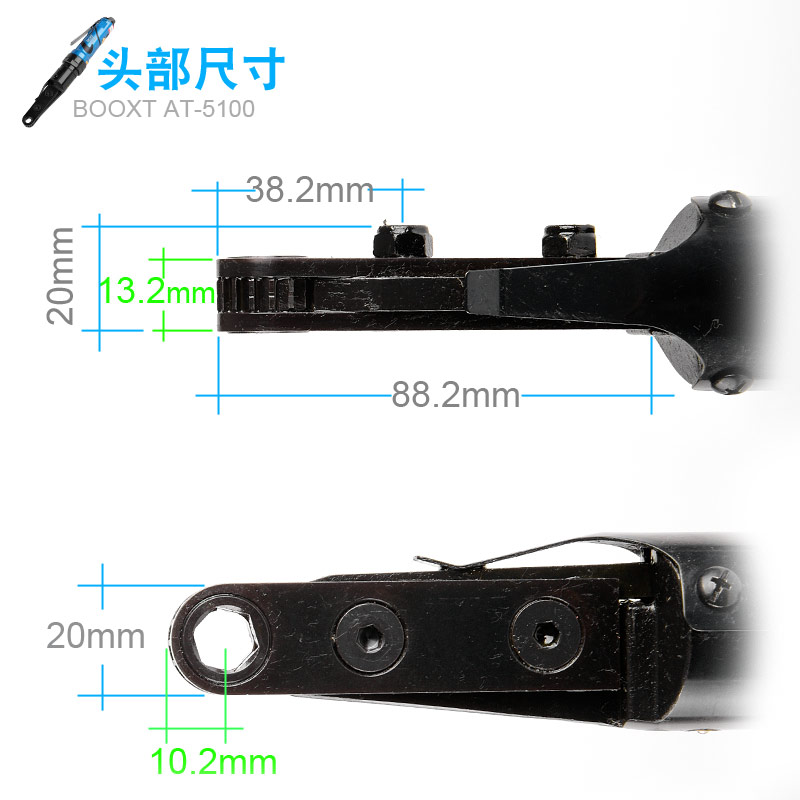 Taiwan BOOXT direct supply AT-5100 industrial grade perforated pneumatic ratchet wrench in the hollow durable import M12