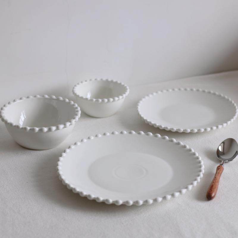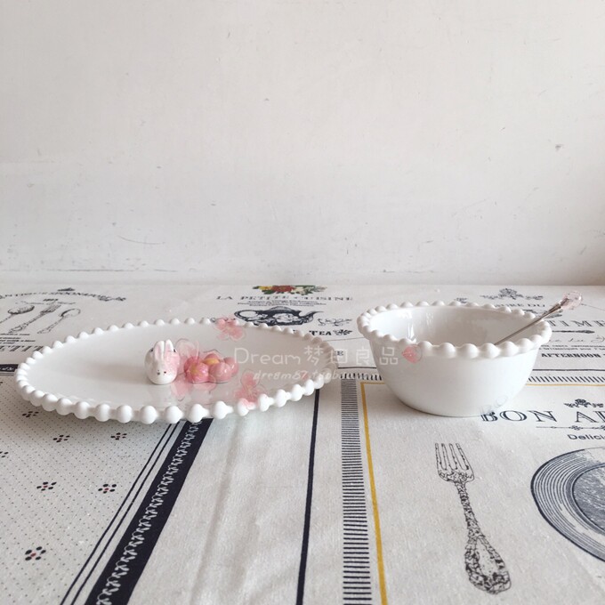 Dream Fields good products] Ceramic lace pure color Pearl spot dish bowl ZAKKA brief Early Dinner Plate Fruit Bowl Steak Pan