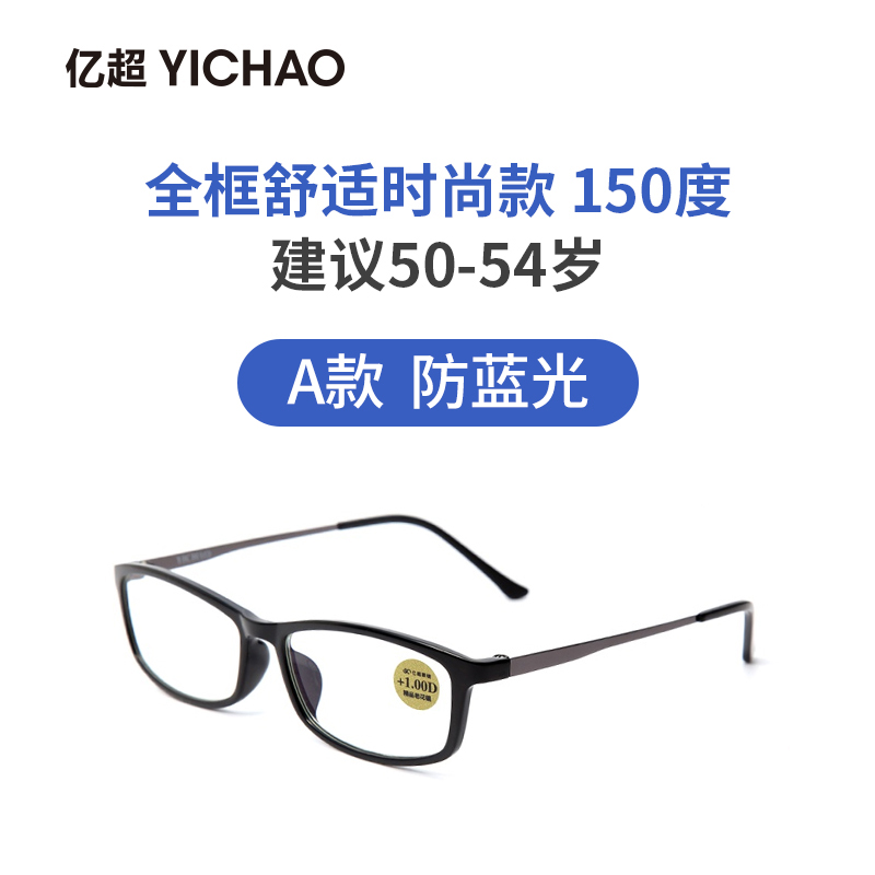 Fashion A anti-blue light 200 degrees (recommended 55-59 years old) elegance B Anti Blue Light 100 degrees (recommended 45-49 years old) elegance B Anti Blue Light 150 degrees (recommended 50