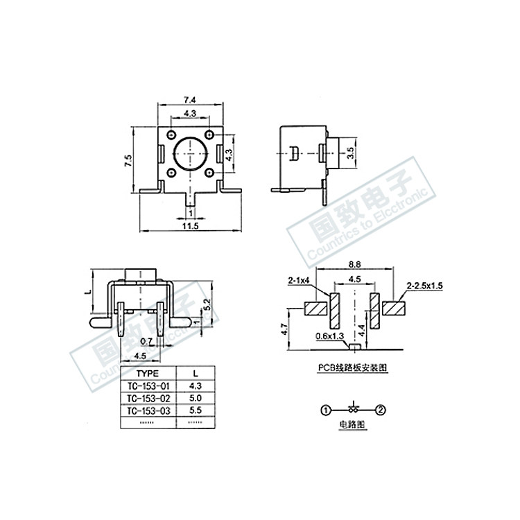 TC-153 light switch 6x6x4 3 patch with bracket button switch 6 * 6 * 4 3 iron frame