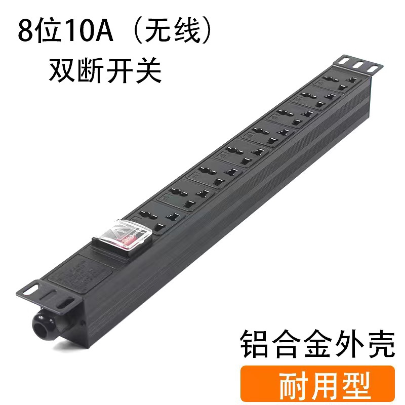Aluminum alloy 8-bit 10A PDU cabinet row plug 19 inch 1U cabinet socket wiring board with lightning protection device high power