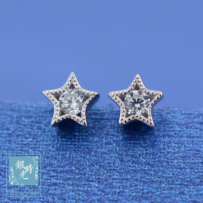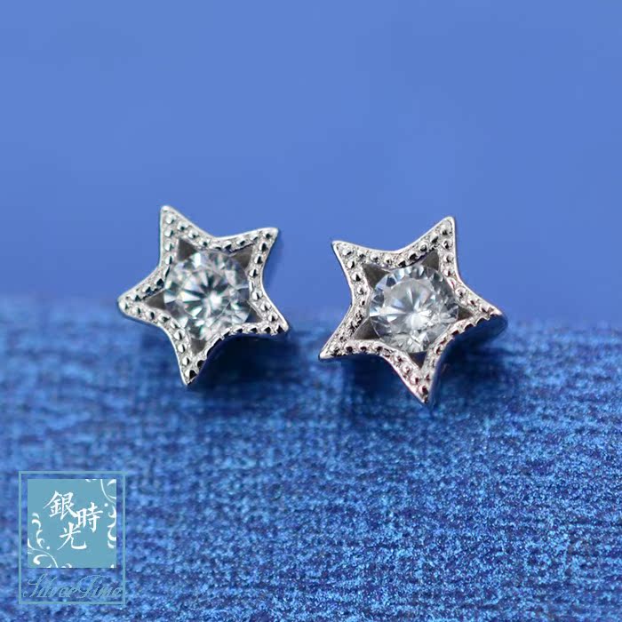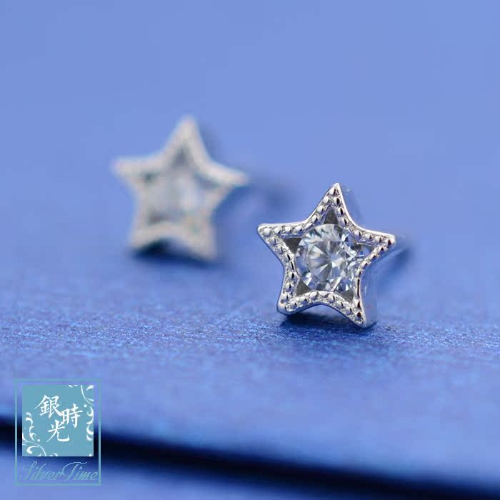 Silver time S925 pure silver ear nail mini inlaid diamond zircon star earrings Fashion Creative Personality Earrings-Taobao