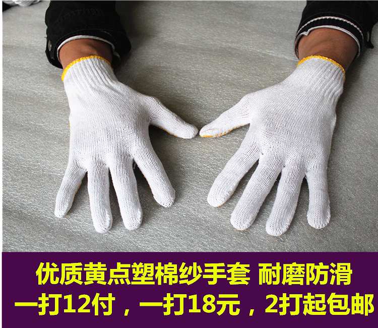 Yellow Dot Plastic Gloves Yarn Point Glue Gloves Cotton Yarn Point Beads Gloves Industrial Non-slip Abrasion Resistant Labor Protection Cotton Yarn Gloves