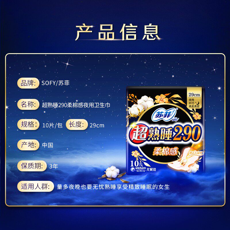 Sufi sanitary cotton ultra-cooked sleeping 290mm soft cotton feeling slim fit for big night with aunt towel 10 pieces