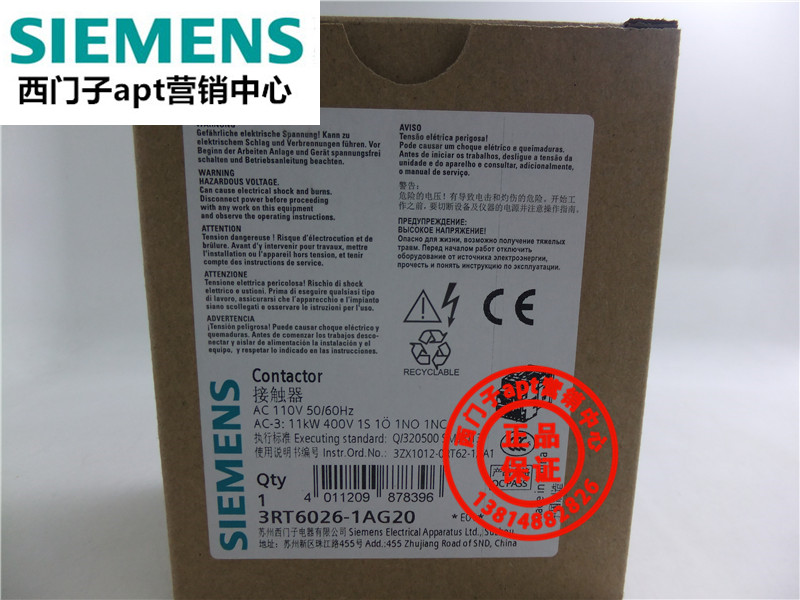(fake one penalty ten) original fitting Siemens AC contactor 3RT6026-1AG20 AC110V