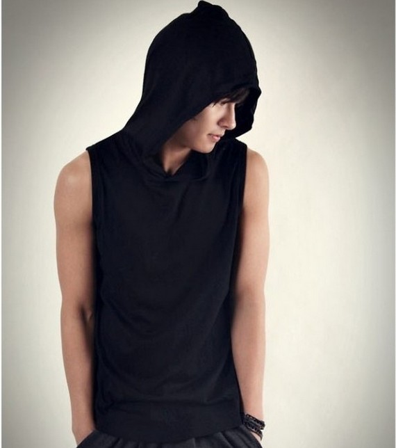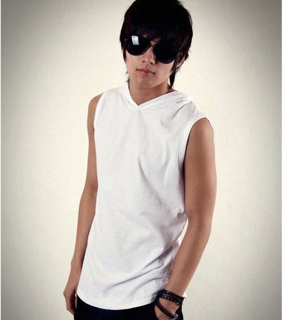 Korean version of tight-fitting sports vest men's summer sleeveless bottoming shirt cotton hoodie youth hooded vest shoulder vest tide