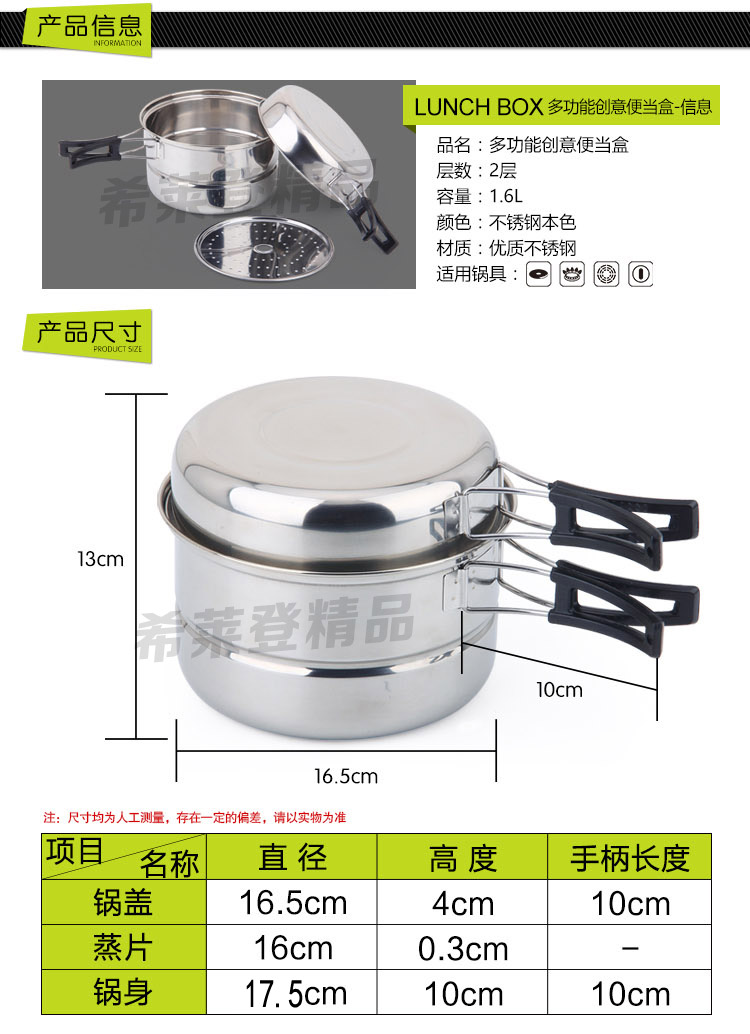 Picnic tableware Stainless steel set pot Outdoor 2-3 person set pot Portable camping cookware Outdoor picnic pot