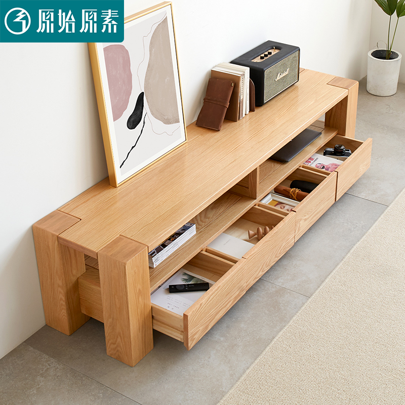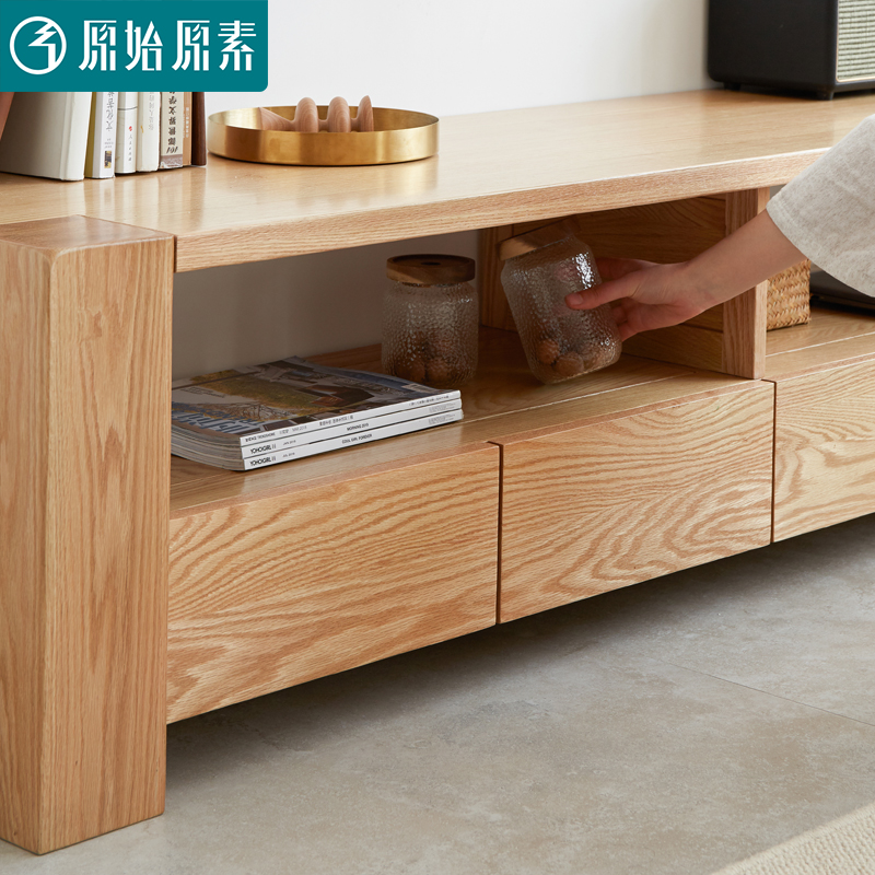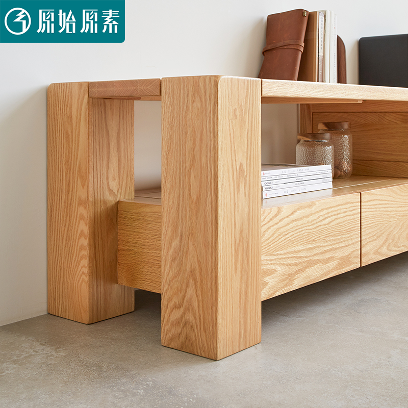 Original original solid wood thick legs TV cabinet Coffee table combination Nordic simple modern oak 1 8 meters floor cabinet B1081