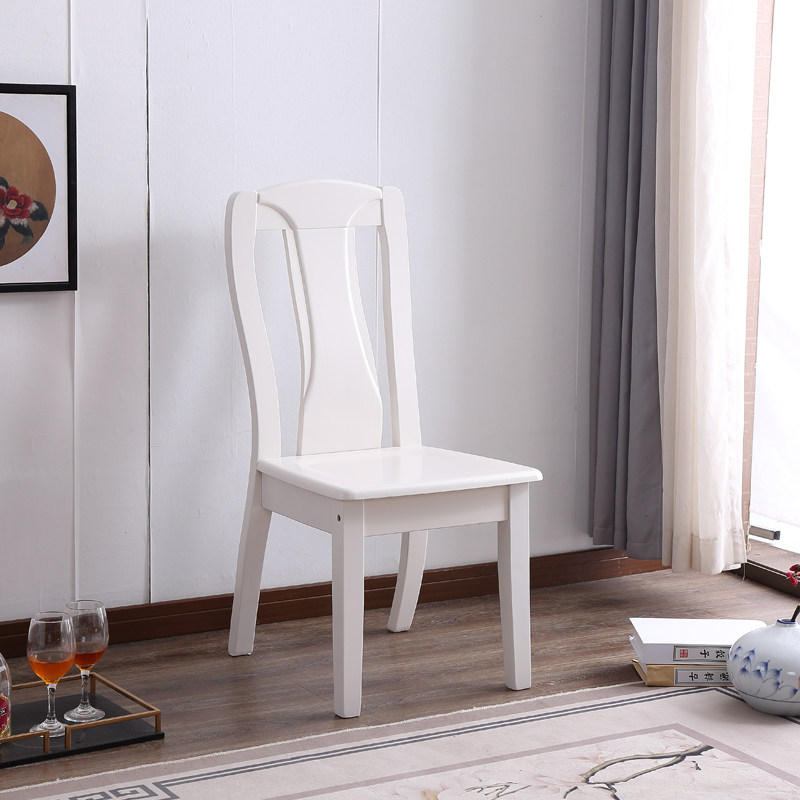 Solid wood European-style Mediterranean white ivory white toasted lacquered minimalist modern full solid wood dining chair Home special price stool