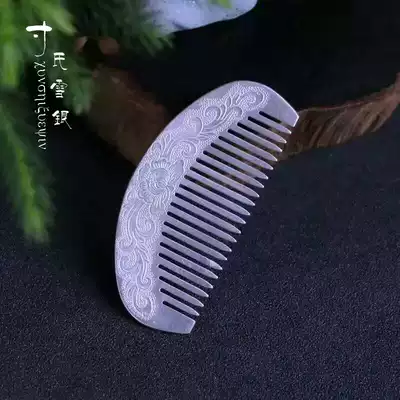 Yunnan handmade silver comb snow silver sterling silver hair comb Lotus silver comb S999 send mother scraping health comb