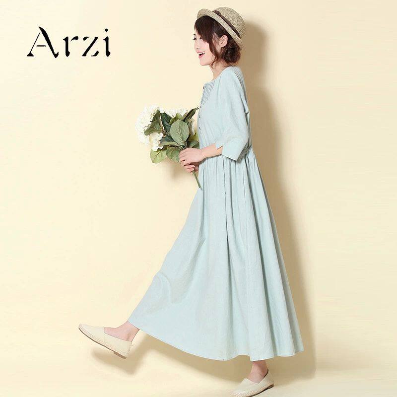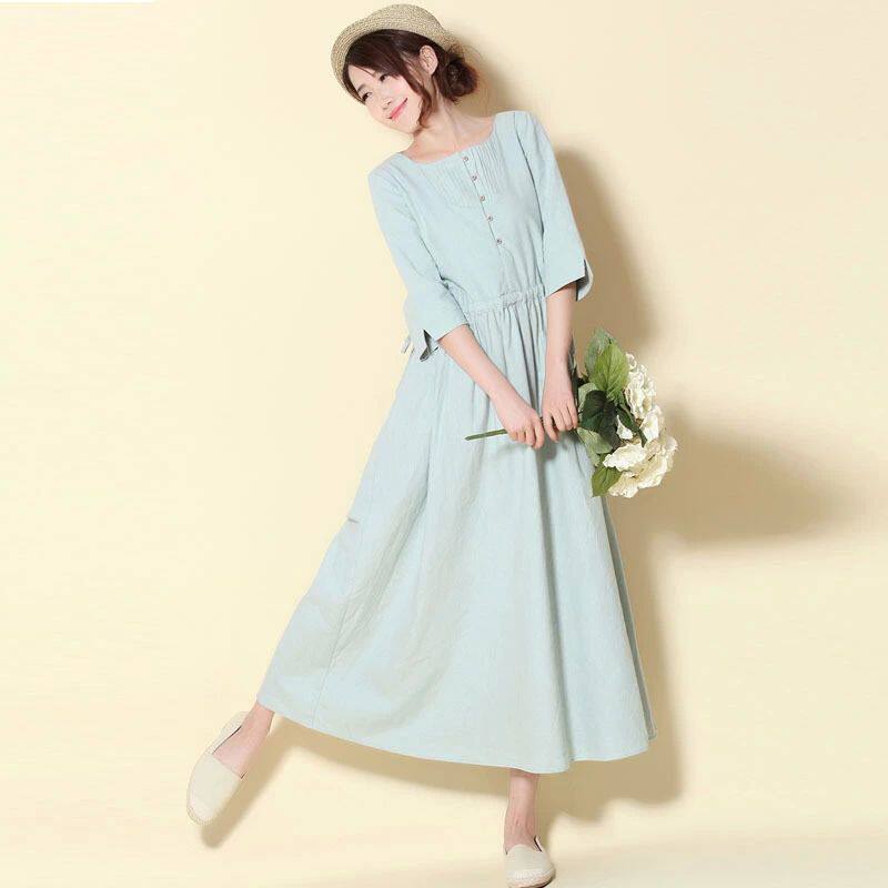 Mid-length cotton and linen dress summer pregnant women's loose waist pregnant mother dress literary small clear a skirt private customization