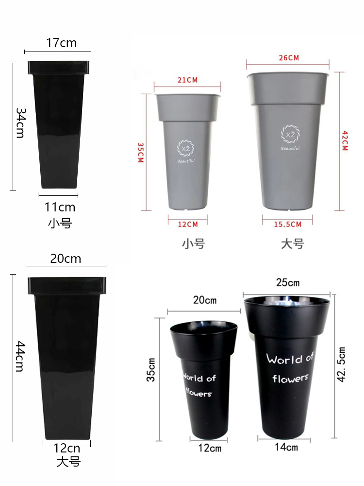 Flower bucket flower bucket flower shop plastic creative flower arrangement barrel material culture bucket square large black wake small flower plastic