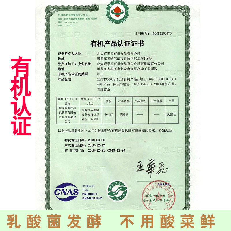 Beidahang Qinmin Organic Food Co, Ltd Organic Sauerkraut Branch