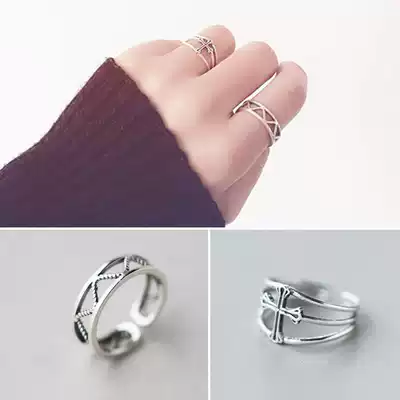 Korean version of Thai silver retro ethnic style cross opening ring Sterling silver wild joint index finger ring combination set