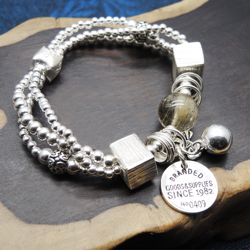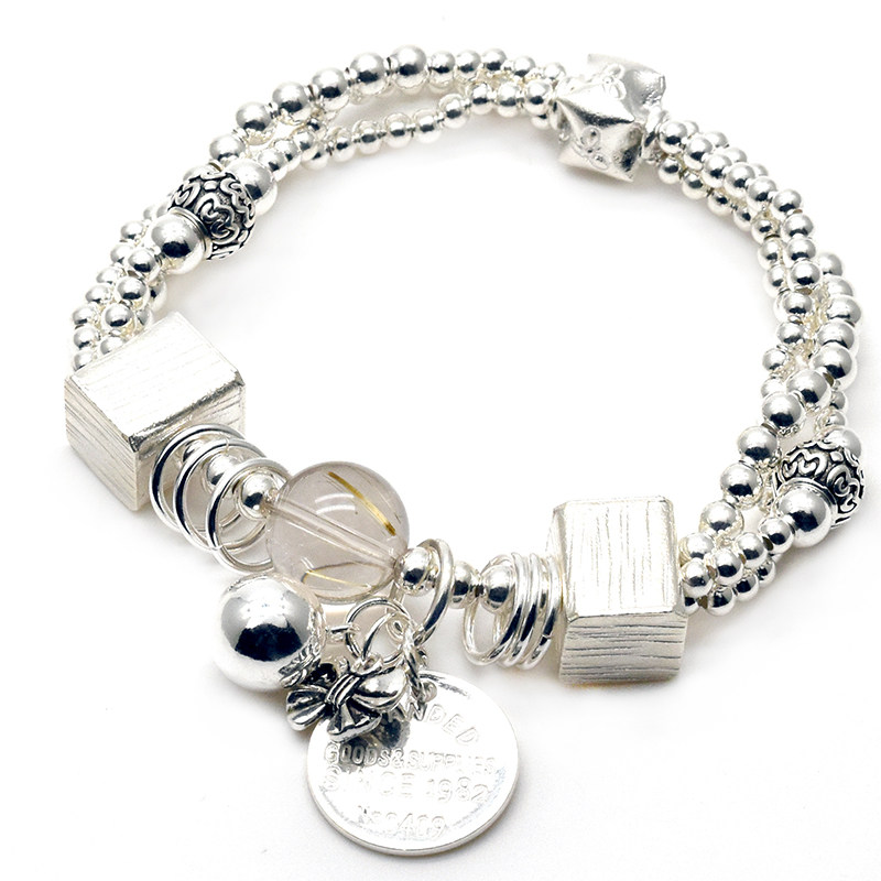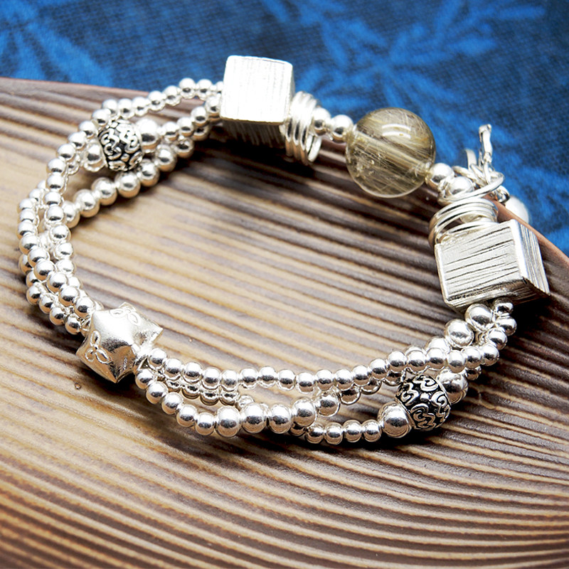 Handmade Woman Pure Silver Fashion Personality Design A Chaelian Jewelry Transfer Crystal Handmade Silver Handstring Silver Handmade Silver Bracelet