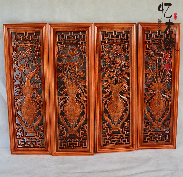 East Yang Wood Carving Melan Bamboo Chamomile Four Screen Hanging Screen Wall Decoration Wood Carving Pendant Incense Camphor Wood Solid Wood Engraving Living Room Wall Decoration